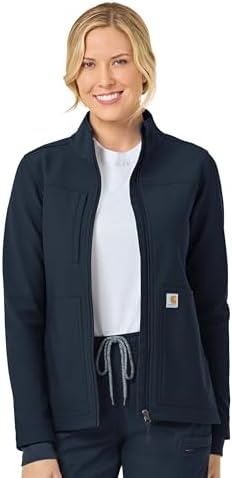 Our scrub jacket combines a modern fit with a stylish 3-pocket design. It features a zip welt exterior chest pocket for secure storage, along with two large front side-entry pockets for easy access. Accented with fashionable Carhartt logo details, this jacket is as stylish as it is functional.