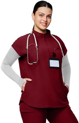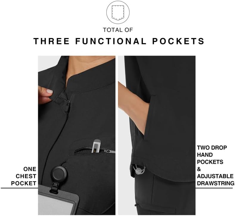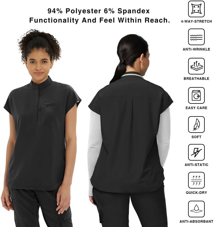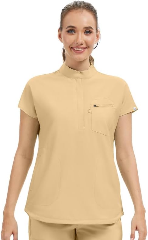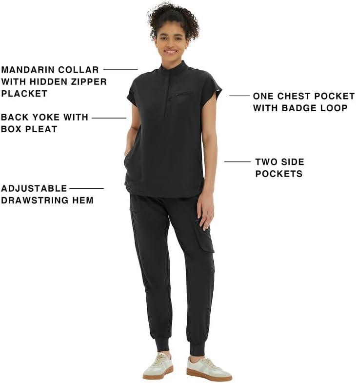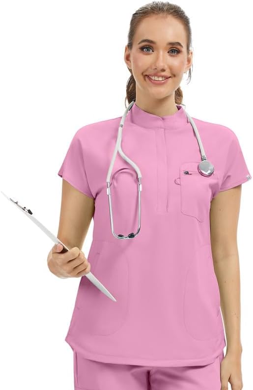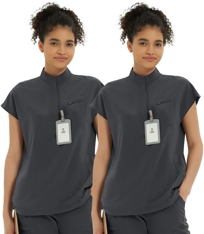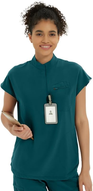 Our fashionable mandarin collar scrub tops feature a chic design with a hidden zipper placket and an oversized fit. This ensures you look professional without compromising on comfort. The adjustable drawstring hem accommodates all body sizes, providing a customized fit that flatters everyone.